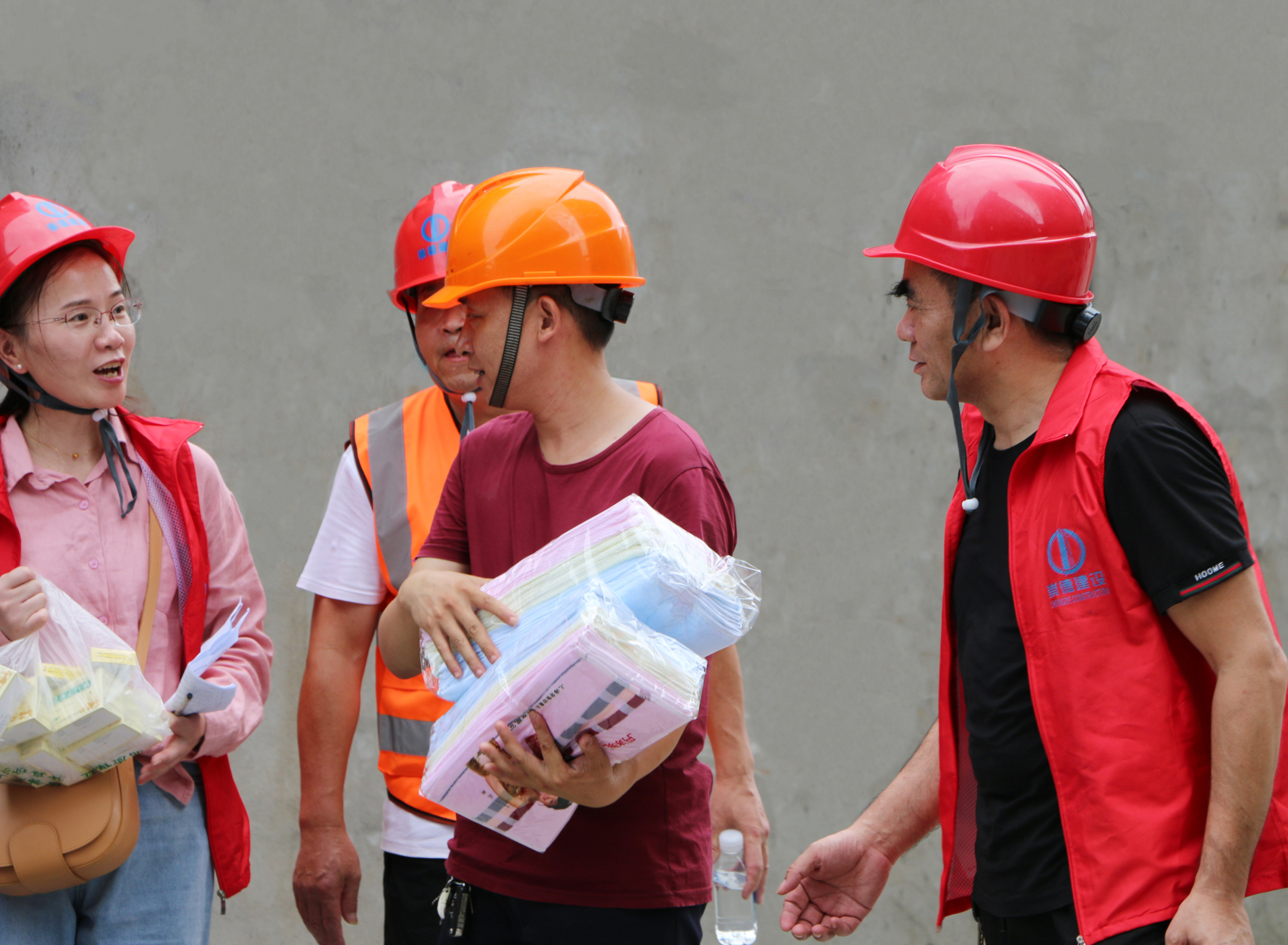 自8月7日以來,由公司黨支部書記柴永根、質(zhì)安副總沈建民等部門負(fù)責(zé)人組成的高溫慰問小組,一站接一站赴工地,看望慰問奮戰(zhàn)在高溫一線的施工人員,詢問高溫作業(yè)情況,為他們送去高溫慰問品,感謝他們戰(zhàn)高溫、斗酷暑,堅(jiān)守崗位。